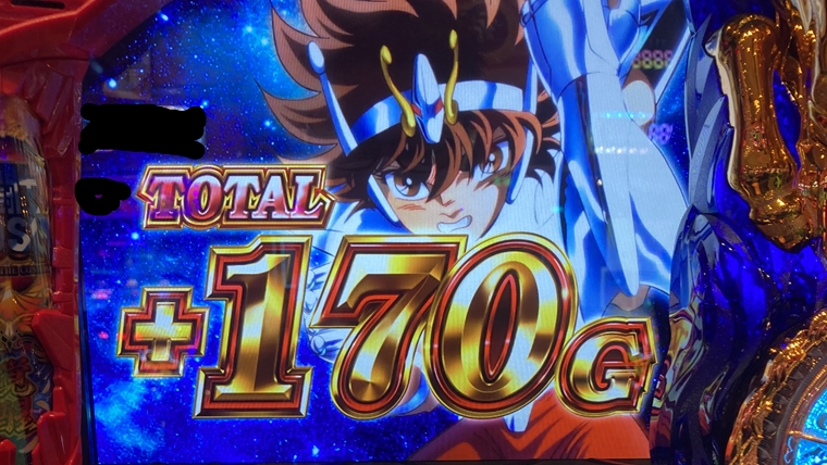 170Gもあれば、聖闘士アタックをしっかり引けば差枚1,200枚を目指せる形に。